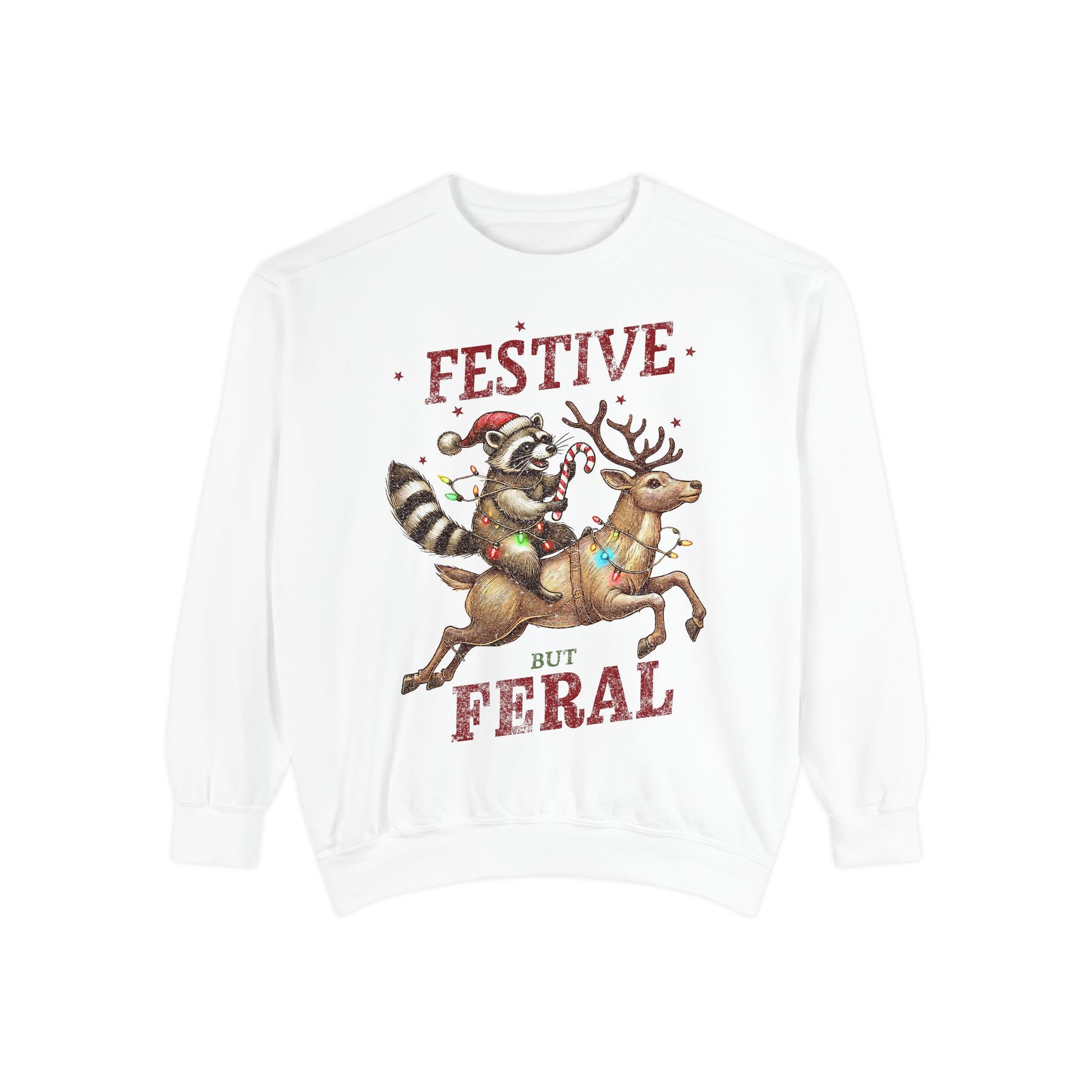 Festive But Feral Christmas Raccoon Sweatshirt
